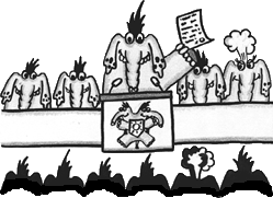 Создать комиссию по вопросу охоты на слонов в пустыне Сахара. В комиссию включить подкомиссию по вопросу целесообразности охоты на слонов в пустыне Сахара, которая вынесет решение о целесообразности охоты на слонов в пустые Сахара. Комиссия по охоте на слонов в пустыне Сахара вынесет резолюцию на основании решения подкомиссии по целесообразности охоты на слонов в пустыне Сахара. Из состава комиссии по вопросу охоты на слонов в пустыне Сахара выделить рабочую группу для оперативного рассмотрения самой пустыни Сахара. После вынесения решения о существовании пустыни Сахара, создается согласительная комиссия, в состав которой входят представители от слонов из пустыни Сахара. Согласительная комиссия по вопросу охоты на слонов в пустыне Сахара разрабатывает квоты на охоту на слонов в пустыне Сахара. Квоты на охоту на слонов в пустыне Сахара утверждается советом старейшин пустыни Сахара. Для выбора совета старейшин пустыни Сахара следует провести выборы совета старейшин, для чего создается избирательная комиссия по пустыне Сахара в работе которой участвуют международные наблюдатели. После чего комиссия по вопросу об охоте на слонов в пустыне Сахара реорганизуется в Государственную Службу Слононадзора (прием по личным вопросам среда, четверг 15:00-16:00). Для контроля за Службой Слононадзора утверждается постоянно действующая депутатская комиссия, которая поручает вопрос об охоте на слонов в пустыне Сахара Службе Слононадзора.